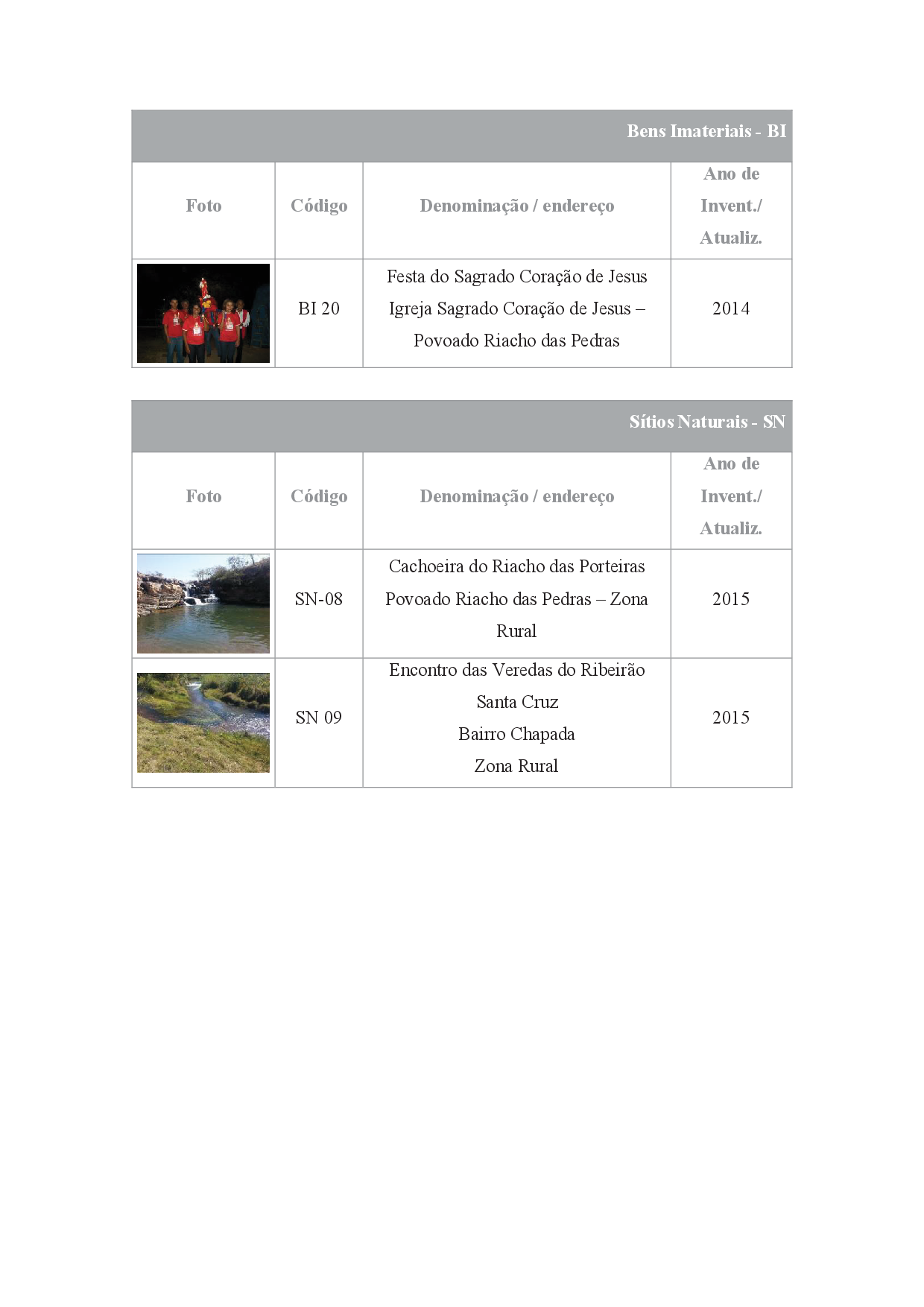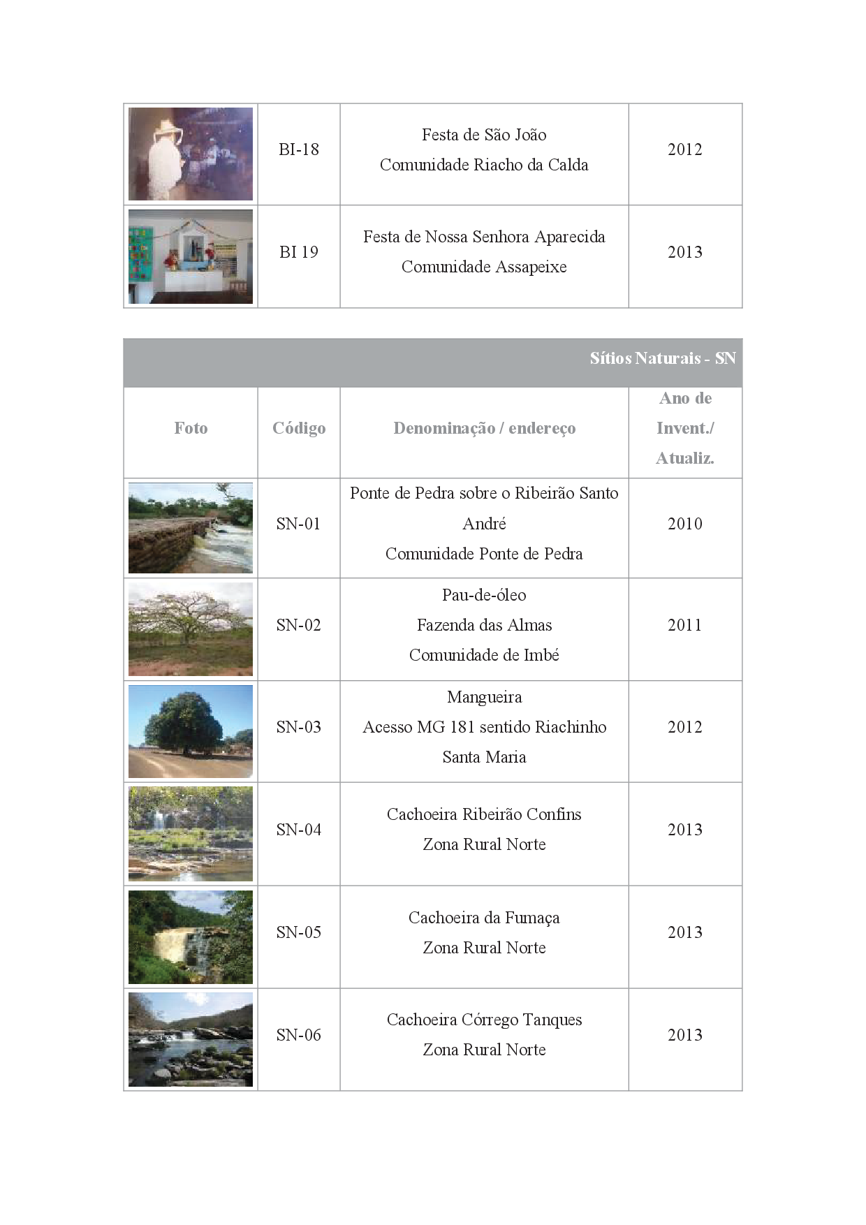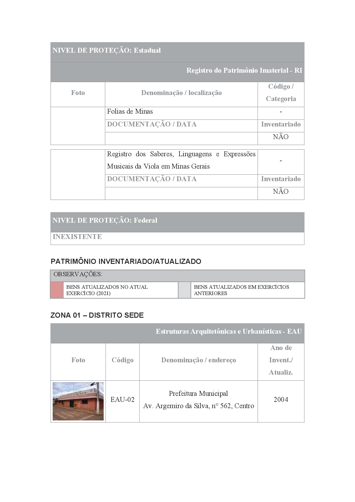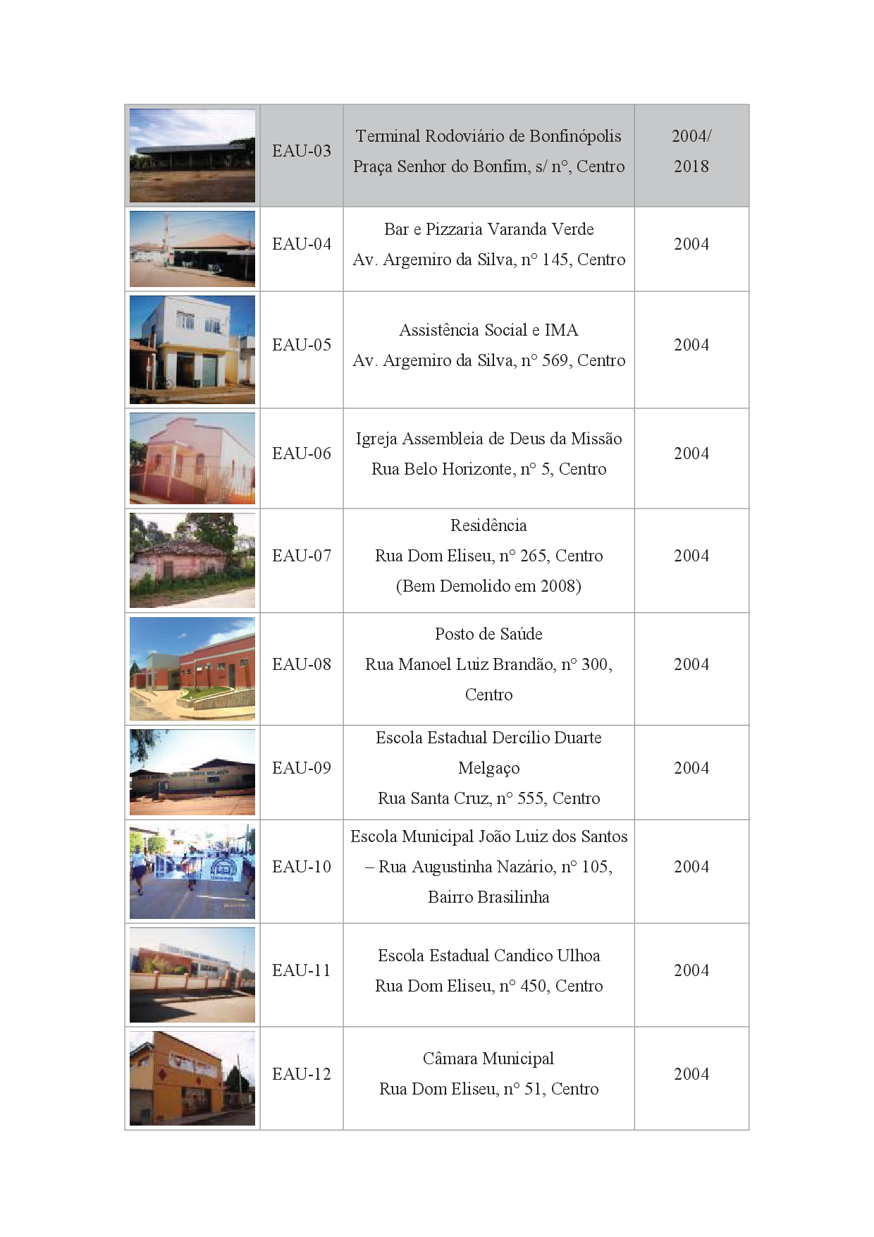 Abaixo temos o Inventário do Patrimônio Cultural de bens inventariados e tombados do Município de Bonfinópolis de Minas.