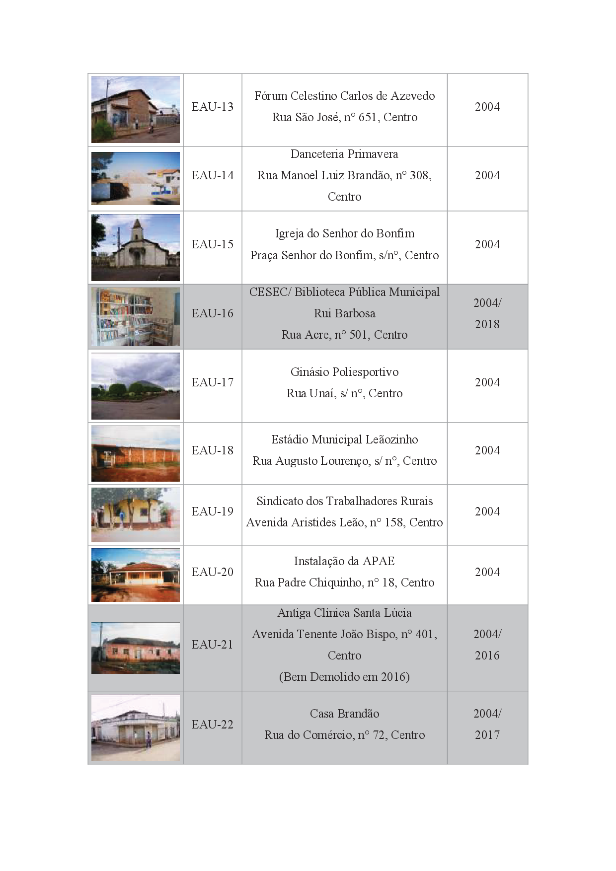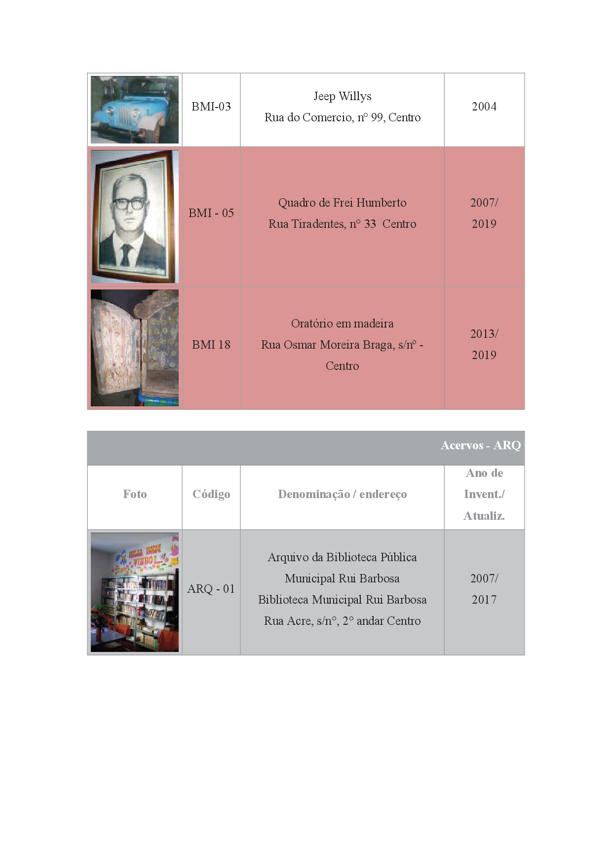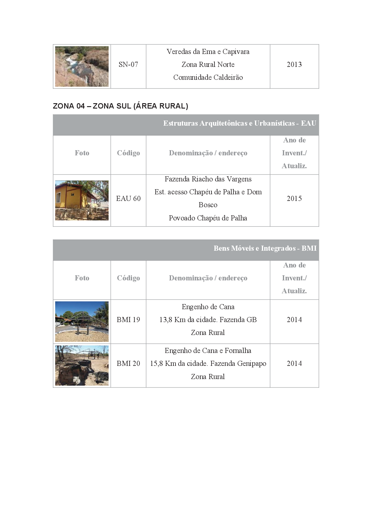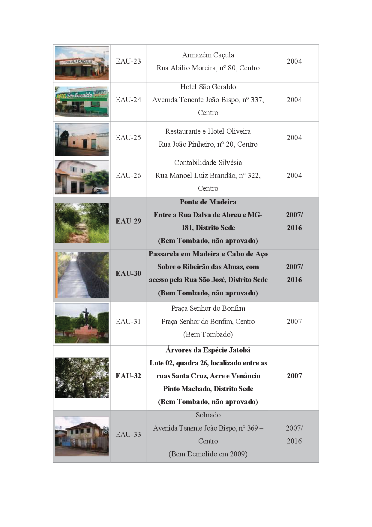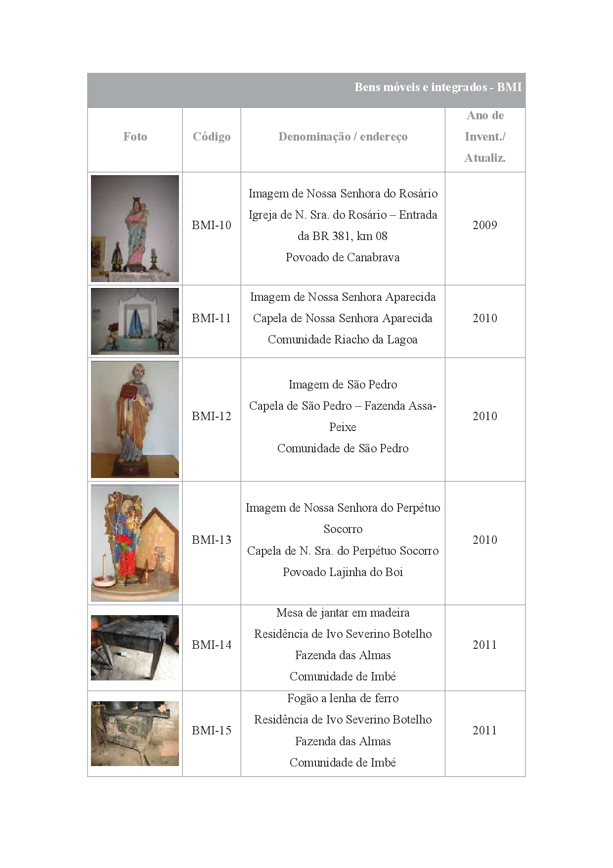 Abaixo temos o Inventário do Patrimônio Cultural de bens inventariados e tombados do Município de Bonfinópolis de Minas.