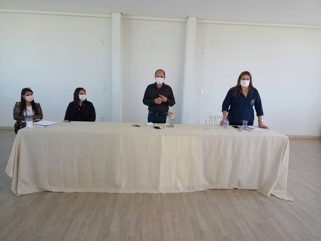 Aconteceu nesta manhã de sexta-feira, na sede da prefeitura uma reunião com Secretários, Diretores de escolas estaduais e municipais, Vigilância Sanitária, Secretária de Educação e Saúde, Coordenadora Epidemiológica, o Prefeito e Vice-prefeita.