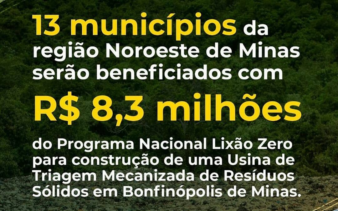 13 municípios da região Noroeste de Minas serão beneficiados com R$ 8,3 milhões do Programa Nacional Lixão Zero