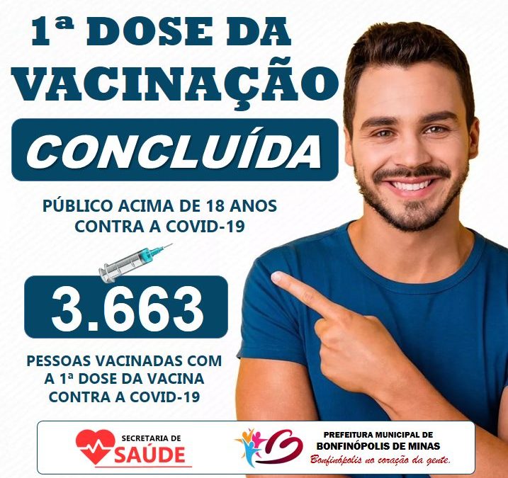 O Município de Bonfinópolis de Minas comunica oficialmente o alcance de vacinas contra a COVID-19 (dose 1) em toda população acima de 18 anos.