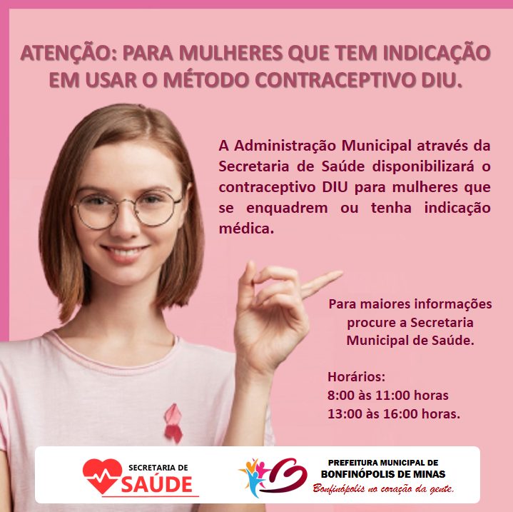A Secretaria Municipal de Saúde informa que está sendo disponibilizado a implantação do DIU em parceria com a ginecologista para mulheres que tenham indicação
