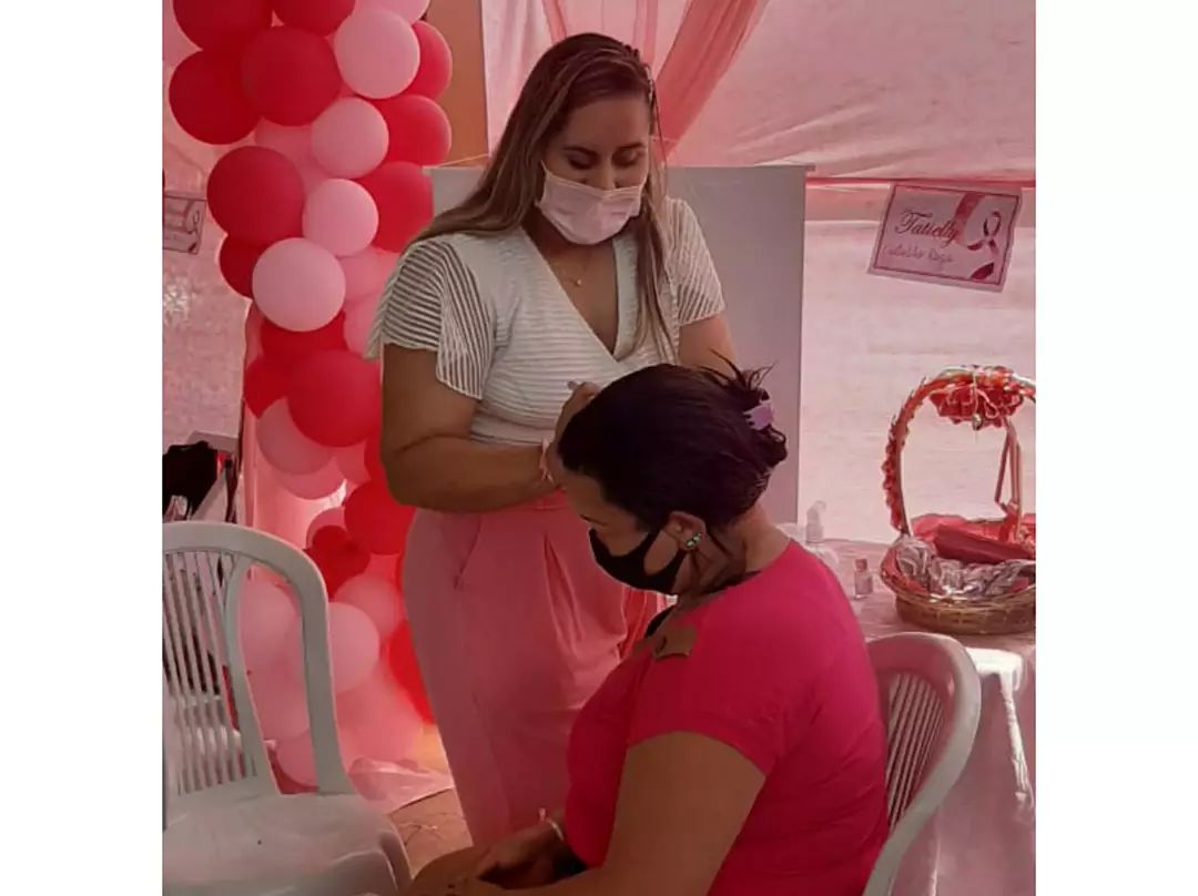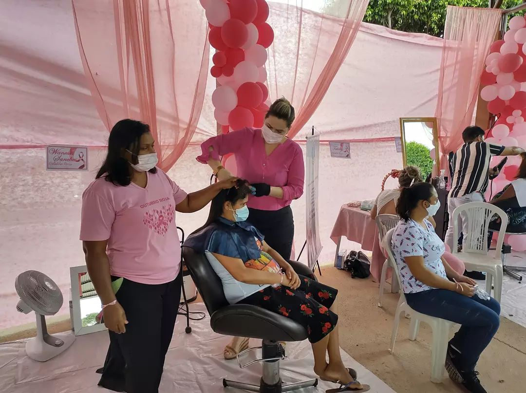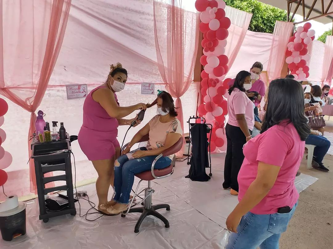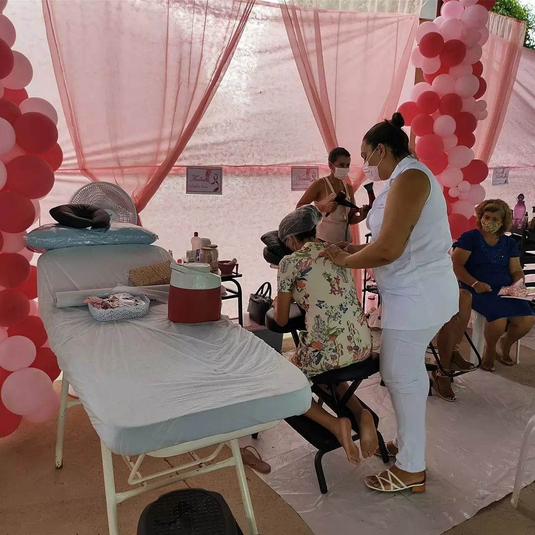 Aconteceu no dia 29/10 o dia D do Outubro Rosa no nosso município. Foram ofertados diversos tipos de atendimento no local, desde cortes de cabelo, escova, massagem, limpeza de pele, auriculoterapia, realização de testes rápidos, atrações musicais, dinâmica, palestras, além da distribuição de lembrancinhas e brindes às convidadas.