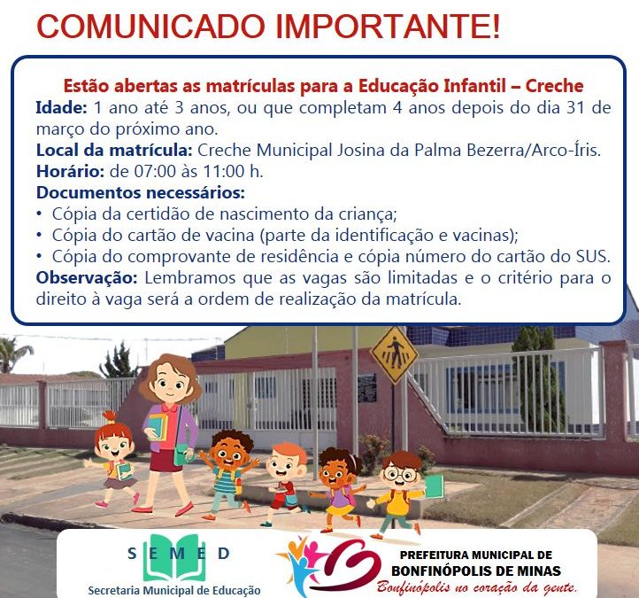 Maiores informações procure a Creche Arco-Íris no horário definido.