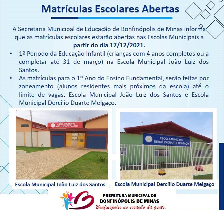 Informativo da Secretaria Municipal de Educação: matrículas nas escolas E.M.D.D.M e E.M.J.L.S