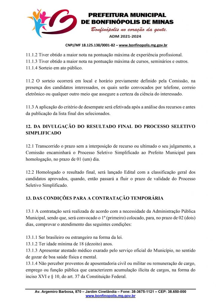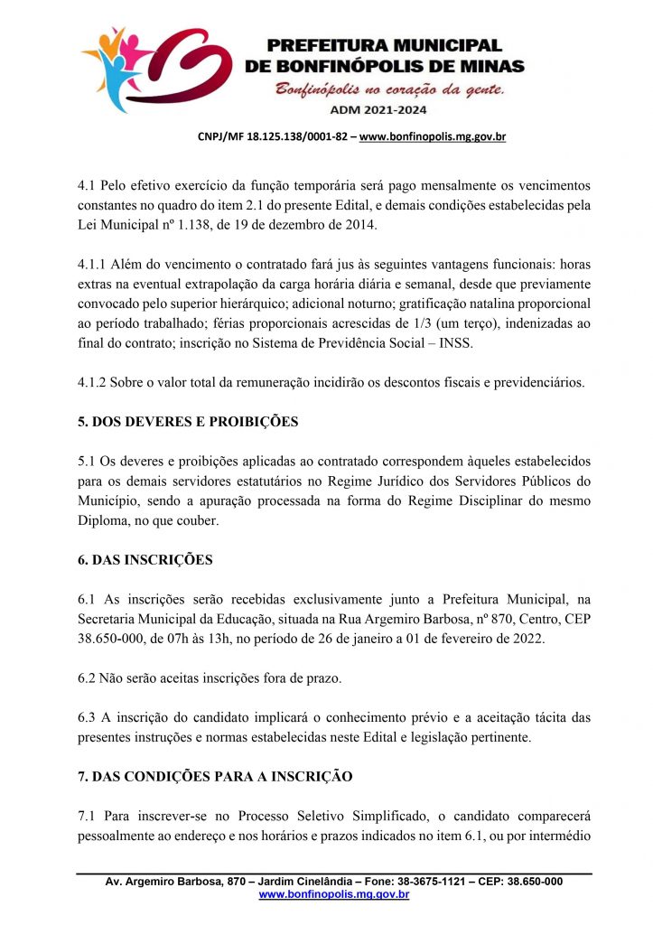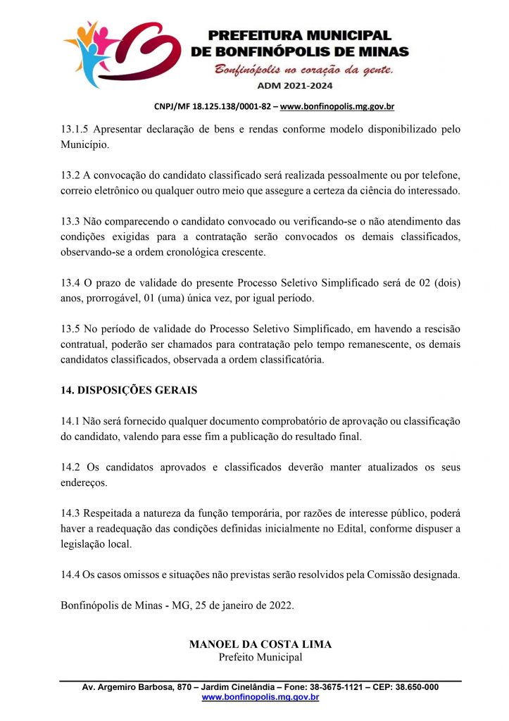 26 janeiro, 2022PROCESSO SELETIVO SIMPLIFICADO PARA CONTRATAÇÃO POR PRAZO DETERMINADO