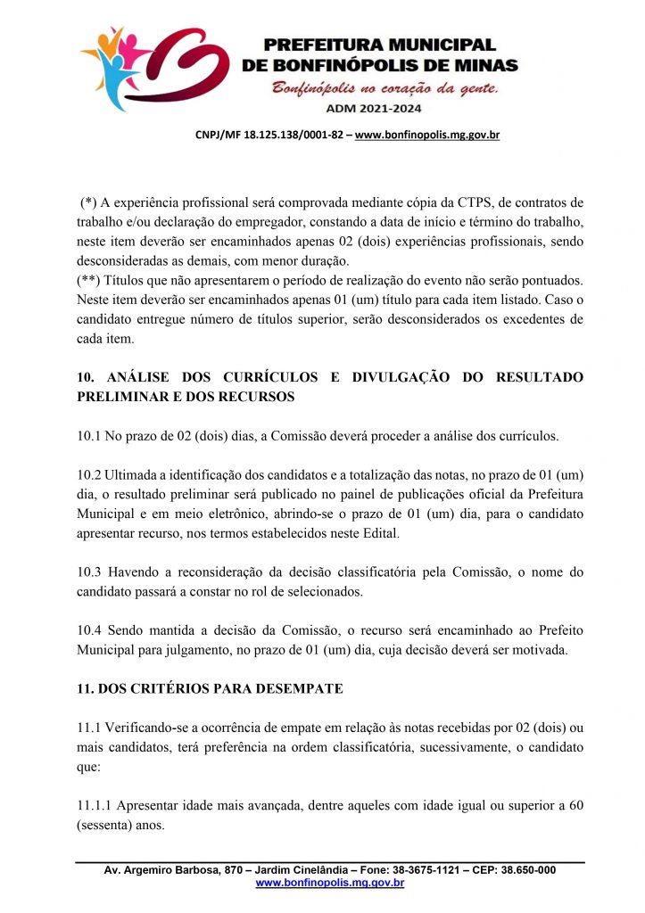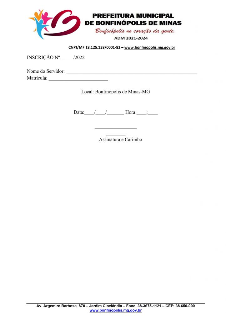 Av. Argemiro Barbosa da Silva, nº 870, Bonfinópolis de Minas – MG, CEP: 38650-000