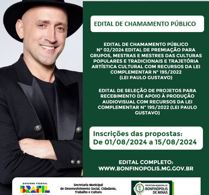 17 outubro, 2024Edital de chamamento público – Lei Paulo Gustavo -2024