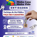 A Habitaemg em parceria com a Prefeitura convida você para o ato público e realização de cadastro do programa Minha Casa Minha Vida – Entidades