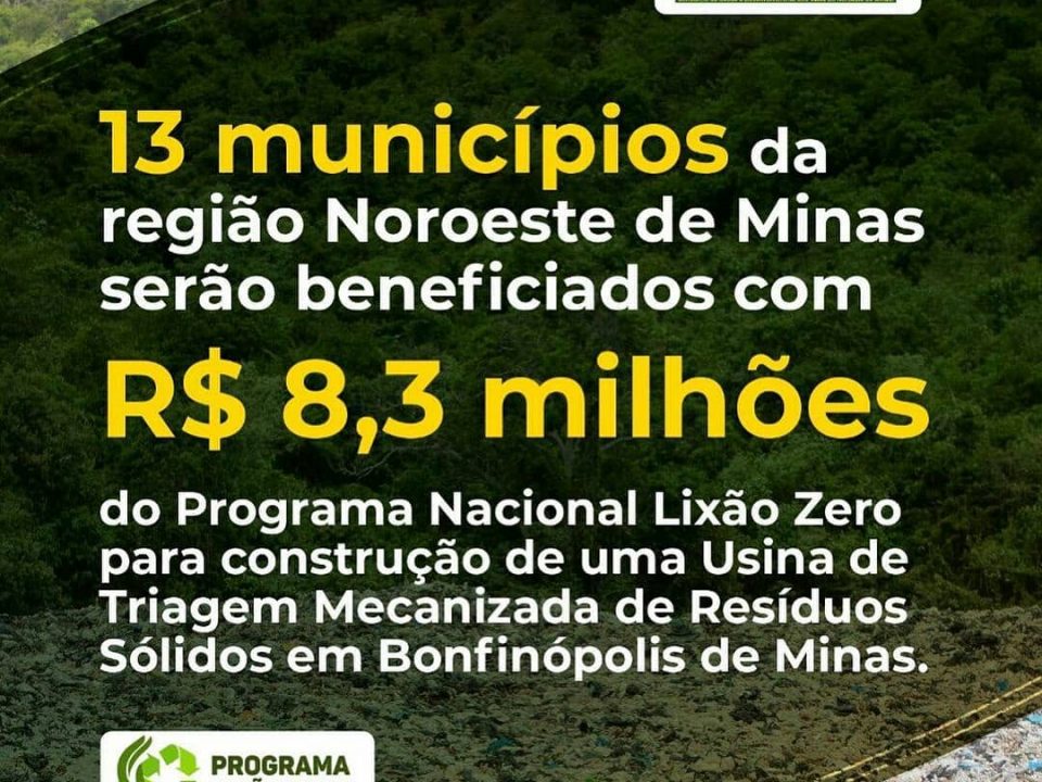 13 municípios da região Noroeste de Minas serão beneficiados com R$ 8,3 milhões do Programa Nacional Lixão Zero